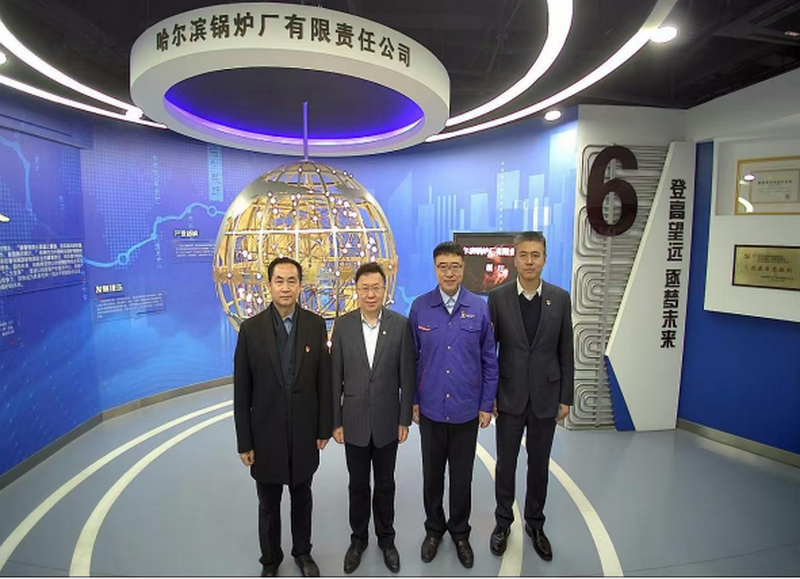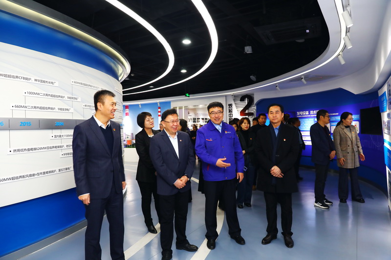 在讲解员的引导下,党员干部们走访参观哈锅公司展厅, 观看企业宣传片,了解哈锅作为东北老工业振兴基地企业历、管理模式、企业产品、企业市场等情况。哈尔滨锅炉厂有限责任公司成立于1954年,是新中国第一个五年计划期间兴建的国家重点大型骨干企业,是前苏联援建我国156项重点工程中的两项,是建强“三基地”重要企业组成,是中央管理的关系国家安全和国民经济命脉的国有重要骨干企业之一—哈尔滨电气集团(简称"哈电集团" )的重要成员企业。公司以设计制造50MW-1000MW火力发电锅炉为主导产品,并设计制造锅炉和汽轮机辅机、石化容器、核能设备以及军工等产品,是国内生产能力最大、最具规模的发电设备制造企业。