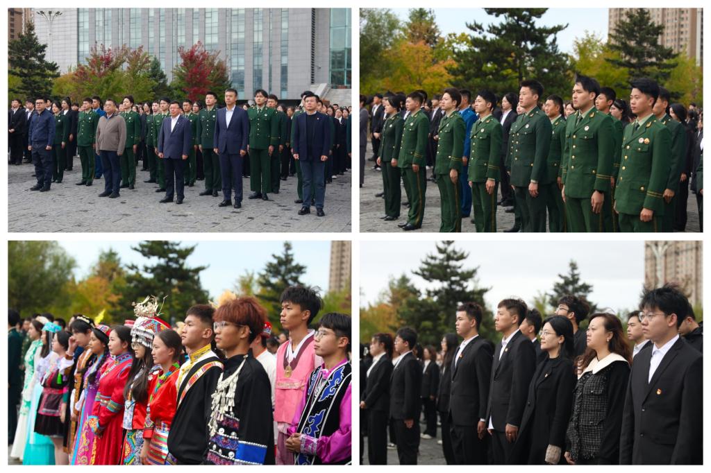 为庆祝中华人民共和国成立75周年,大力弘扬爱国主义精神,激发我校师生的爱国热情,引导广大青年学生坚定理想信念,增强对伟大祖国的认同感与自豪感,9月30日清晨,哈尔滨金融学院在诚信广场举行“礼赞新中国,奋进强国路”迎国庆主题升旗仪式。学校领导、相关职能部门负责人、各学院党总支书记、团委书记、教师以及学生代表共同参加升旗仪式。