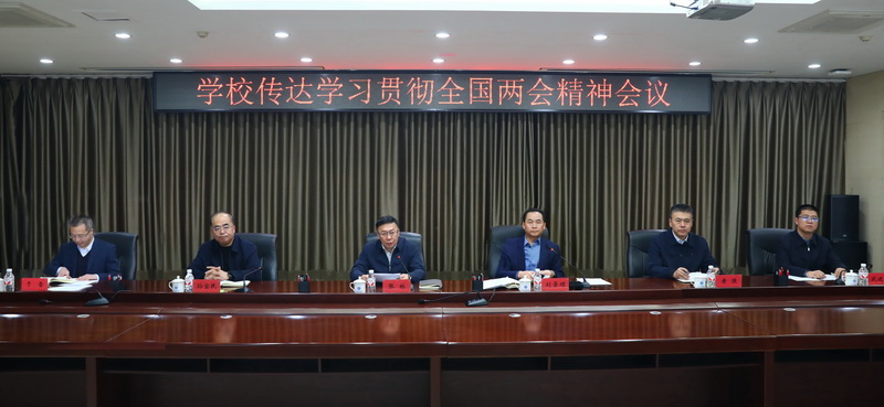 3月18日,我校召开全校干部大会传达学习全国两会精神。会议传达学习了习近平总书记在全国两会期间的重要讲话精神、十四届全国人大三次会议精神、全国政协十四届三次会议精神及全省领导干部会议精神。党委副书记、校长张林主持会议,校领导班子成员、党委委员及全体处级干部参加会议。