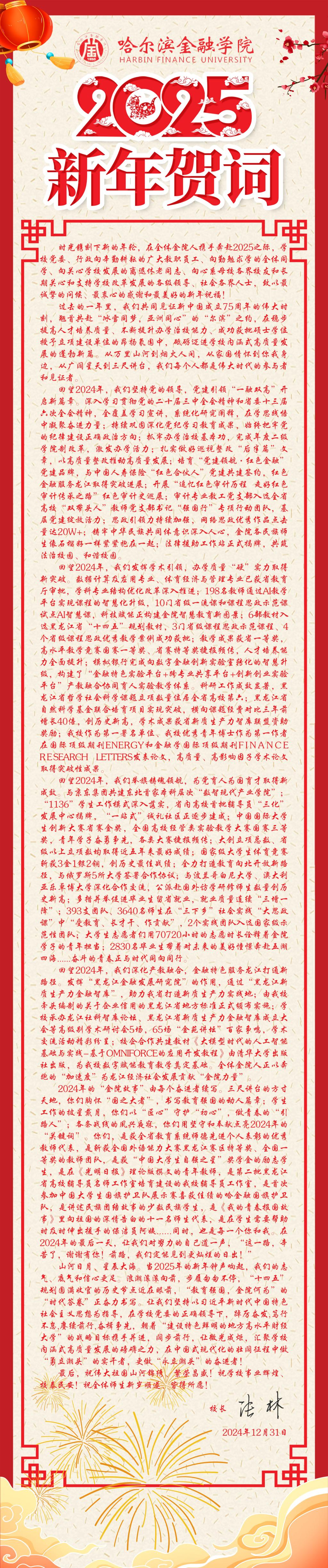 哈尔滨金融学院2025年新年贺词