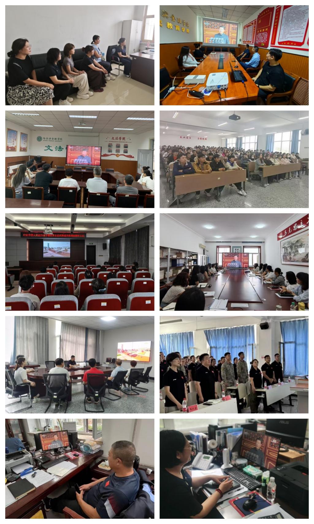 9月3日上午9时,纪念中国人民抗日战争暨世界反法西斯战争胜利80周年大会在京隆重举行。哈尔滨金融学院党委高度重视,积极组织广大师生通过多种形式集中收听收看了大会实况直播,共同回顾那段波澜壮阔、可歌可泣的峥嵘岁月,深切缅怀革命先烈,感悟伟大抗战精神。