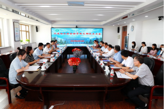 6月16日下午,中国民主促进会哈尔滨金融学院支部成立大会在综合楼576会议室举行。省政协副主席、民进省委主委张显友,党委书记刘小辉出席会议并讲话,民进省委专职副主委李京、秘书长王汉山、组织部部长桂寓洲、省直第五联合支部主委郭湘琳来校指导,校长张林、党委副书记刘景顺、宣传统战部相关同志、民主党派代表人士、学院民进支部成员参加了会议。会议由校长张林主持。